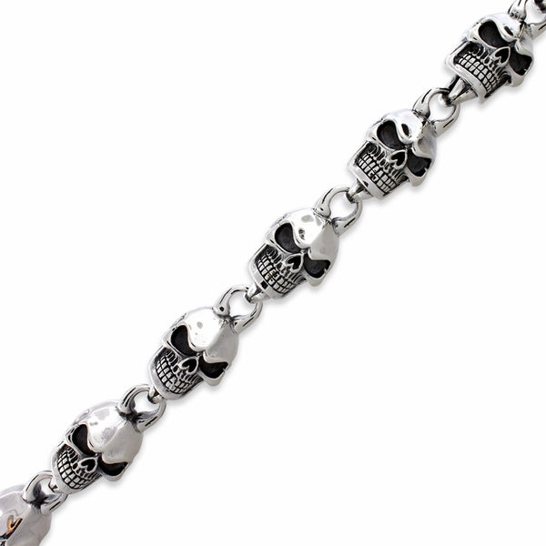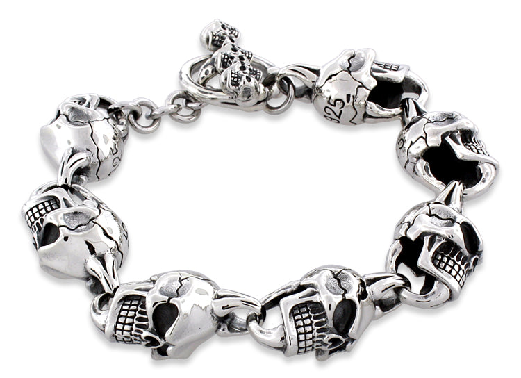 Sterling Silver Angry Skull Link Bracelet