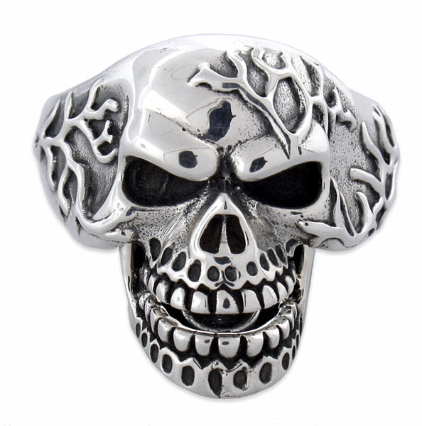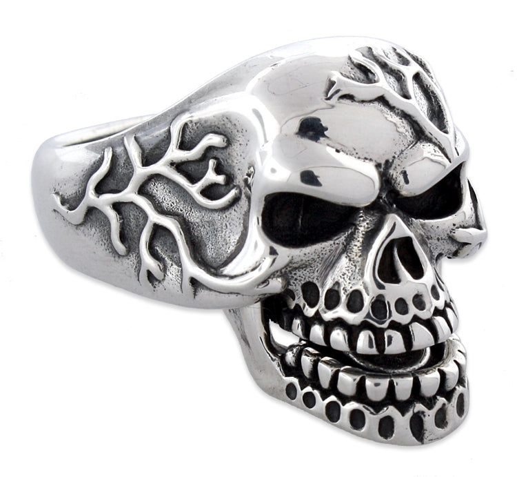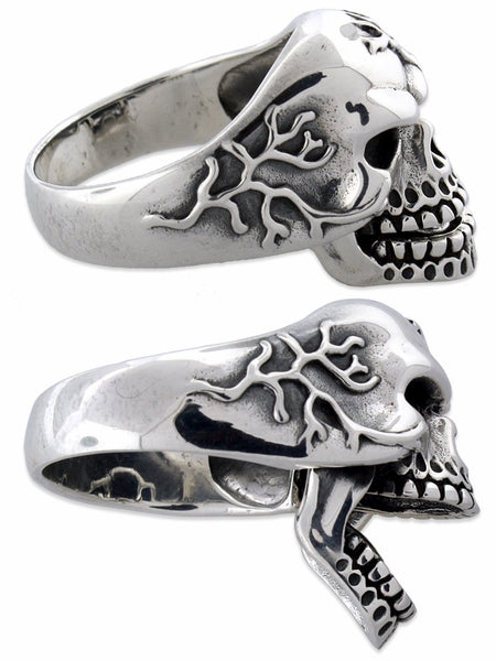 Sterling Silver Vein Skull Ring w/ Moveable Jaw