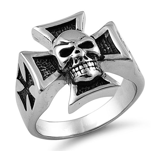 Stainless Steel Iron Cross Skull Ring
