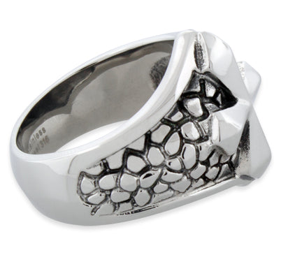 This ring is made of Surgical Stainless Steel, hand crafted with the Finest Detail giving it a very Masculine and Dark look. Add this manly piece to your collection and see just what kind of attention you will get. Don't be fooled by our low price This ring is top quality and retails for much, much, more in stores! By importing directly from the source we are able to offer this magnificent ring at a tremendous discount.
