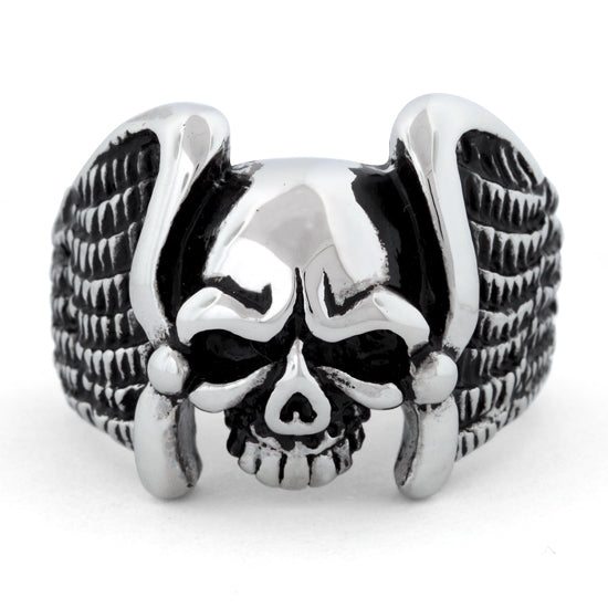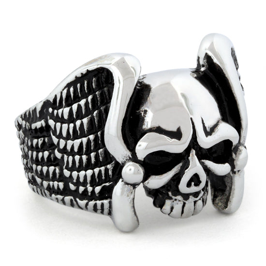 This Stainless Steel Skull Ring is made of Surgical Stainless Steel, hand crafted with the Finest Detail giving it a very Masculine and Dark look. Add this manly piece to your collection and see just what kind of attention you will get. Don't be fooled by our low price This ring is top quality and retails for much, much, more in stores! By importing directly from the source we are able to offer this magnificent ring at a tremendous discount.