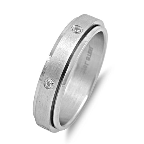 This is a stunning, hand-crafted Stainless Steel Spinner CZ Band Ring. This very unique ring is crafted out of sterling silver in a classy style, and is especially well-made. Perfect for your loved-one or for yourself. Intricately designed Sterling Silver creates a very unique and elegant look! Embellish your beautiful fingers with this piece!