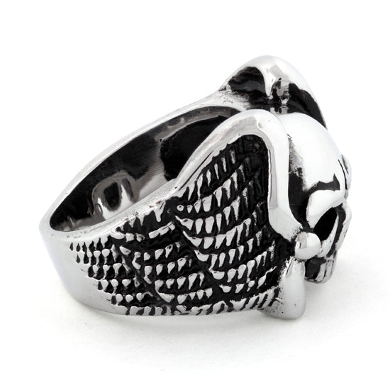 This Stainless Steel Skull Ring is made of Surgical Stainless Steel, hand crafted with the Finest Detail giving it a very Masculine and Dark look. Add this manly piece to your collection and see just what kind of attention you will get. Don't be fooled by our low price This ring is top quality and retails for much, much, more in stores! By importing directly from the source we are able to offer this magnificent ring at a tremendous discount.